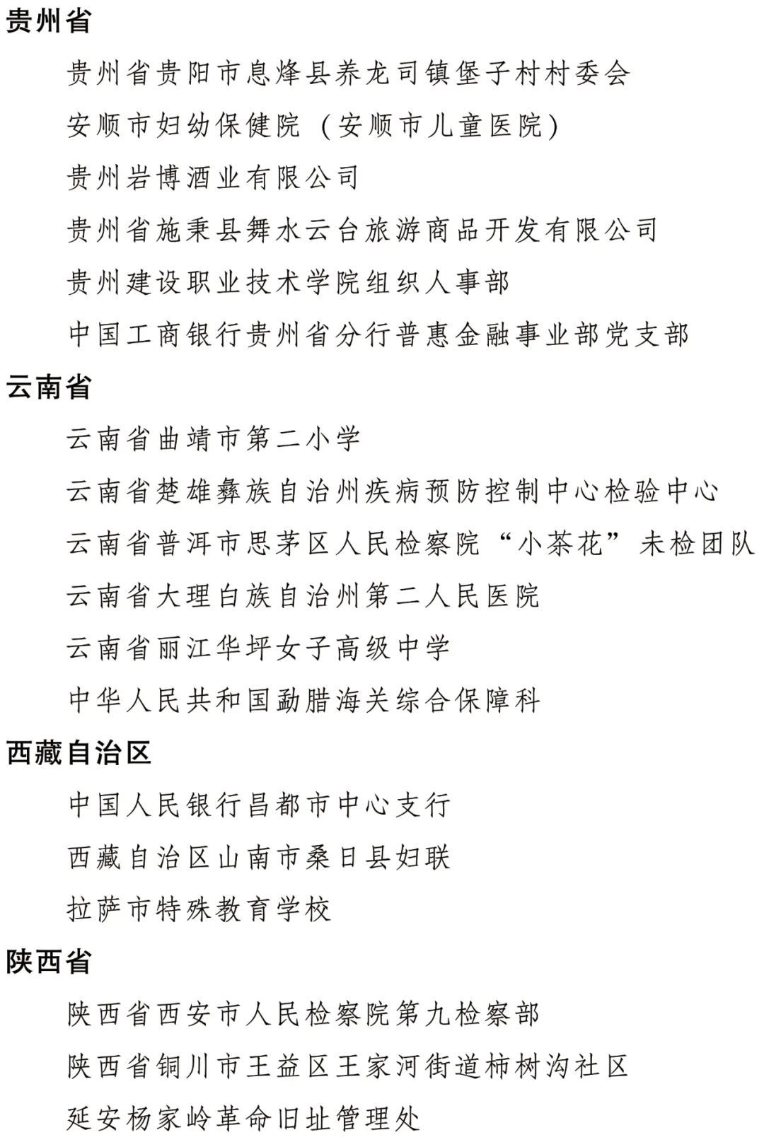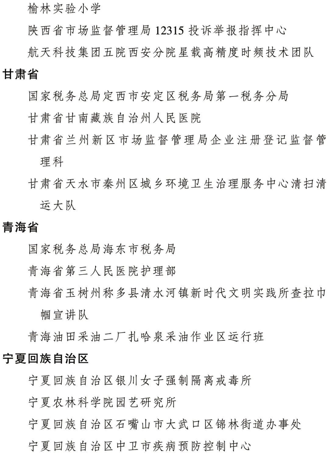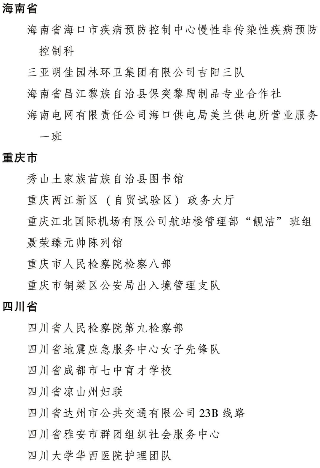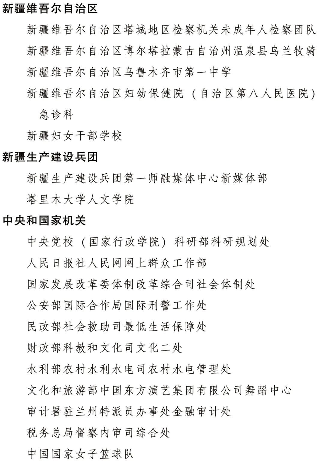 全國(guó)三八紅旗集體名單