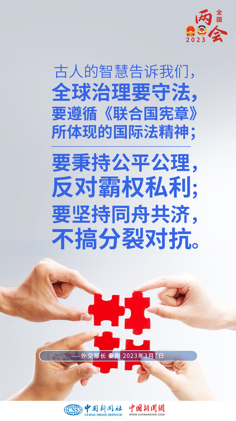 3月7日上午,十四屆全國人大一次會(huì)議新聞中心舉行記者會(huì),邀請(qǐng)外交部長秦剛就“中國外交政策和對(duì)外關(guān)系”相關(guān)問題回答中外記者提問。一組海報(bào)帶您概覽記者會(huì)上的“中國外交好聲音”——