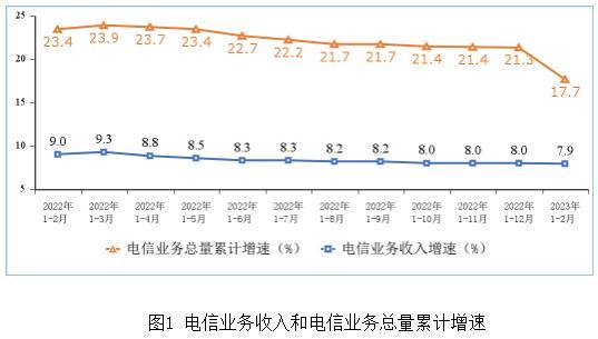 中新網(wǎng)3月23日電 工信部23日發(fā)布2023年1-2月份通信業(yè)經(jīng)濟(jì)運(yùn)行情況。1-2月份,信息通信行業(yè)整體運(yùn)行平穩(wěn)。電信業(yè)務(wù)收入和業(yè)務(wù)總量穩(wěn)步增長(zhǎng),云計(jì)算等新興業(yè)務(wù)拉動(dòng)作用持續(xù)增強(qiáng);5G、千兆光網(wǎng)、物聯(lián)網(wǎng)等新型基礎(chǔ)設(shè)施建設(shè)穩(wěn)步推進(jìn),網(wǎng)絡(luò)連接終端用戶規(guī)模不斷擴(kuò)大。