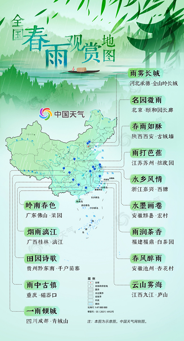 春雨的形態(tài)千變?nèi)f化,人們寄托于春雨的情思也各不相同,可唯一不變的,是春雨帶來的希望。這個(gè)春天,你想去哪里邂逅一場(chǎng)春雨呢?(中國(guó)天氣網(wǎng) 策劃/張方麗 設(shè)計(jì)/張莉 數(shù)據(jù)支持/閔裕秋)