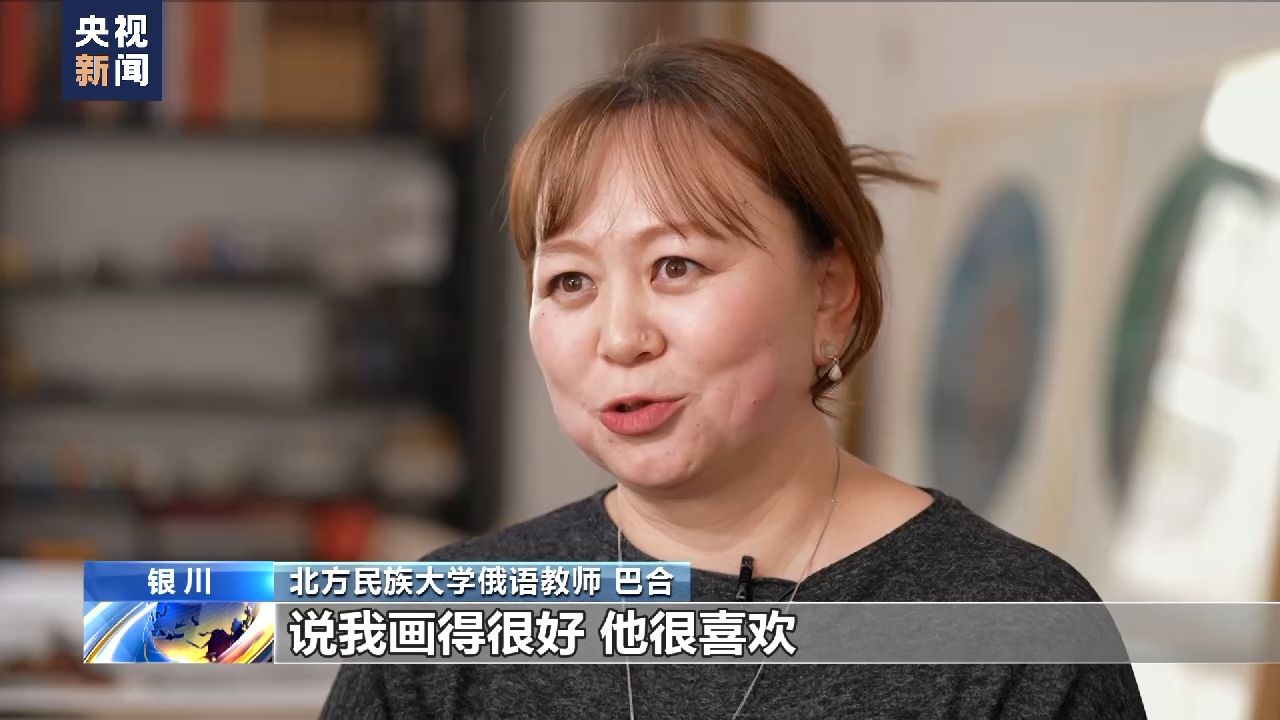 北方民族大學(xué)俄語教師 巴合:我丈夫看了我的畫,說我畫得很好,他很喜歡。從那以后,我就開始了我的藝術(shù)之旅。
