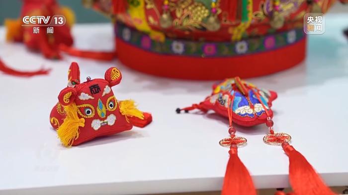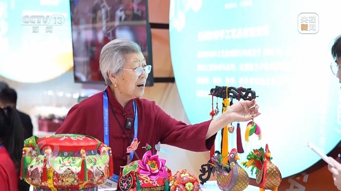 在江蘇展區(qū),一位正在做針線活的白發(fā)老人引人注目,她是江蘇省級非遺項目傳承人王秀英。王奶奶做的徐州香包名字叫做針棒,有著豐厚的文化蘊涵和文化價值,入選第一批國家級非物質(zhì)文化遺產(chǎn)擴(kuò)展項目名錄。這次和王奶奶一同來參展的還有她的孫女孫歌堯。在學(xué)習(xí)傳統(tǒng)工藝的同時,孫歌堯大膽創(chuàng)新,嘗試融入更多技法和材質(zhì)。