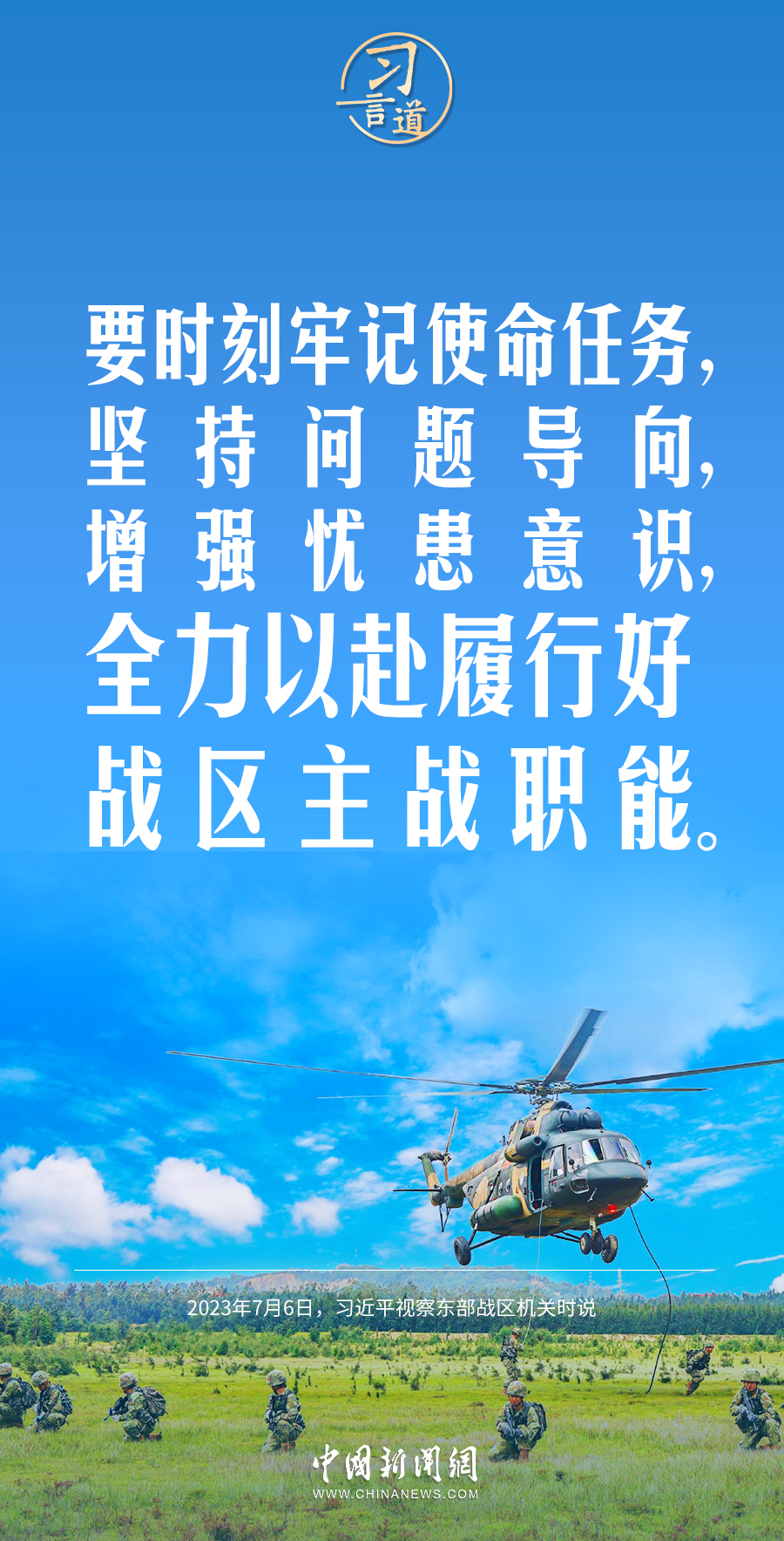 中共中央總書記、國家主席、中央軍委主席習近平6日視察東部戰(zhàn)區(qū)機關,代表黨中央和中央軍委,向東部戰(zhàn)區(qū)全體官兵致以誠摯問候。習近平指出——