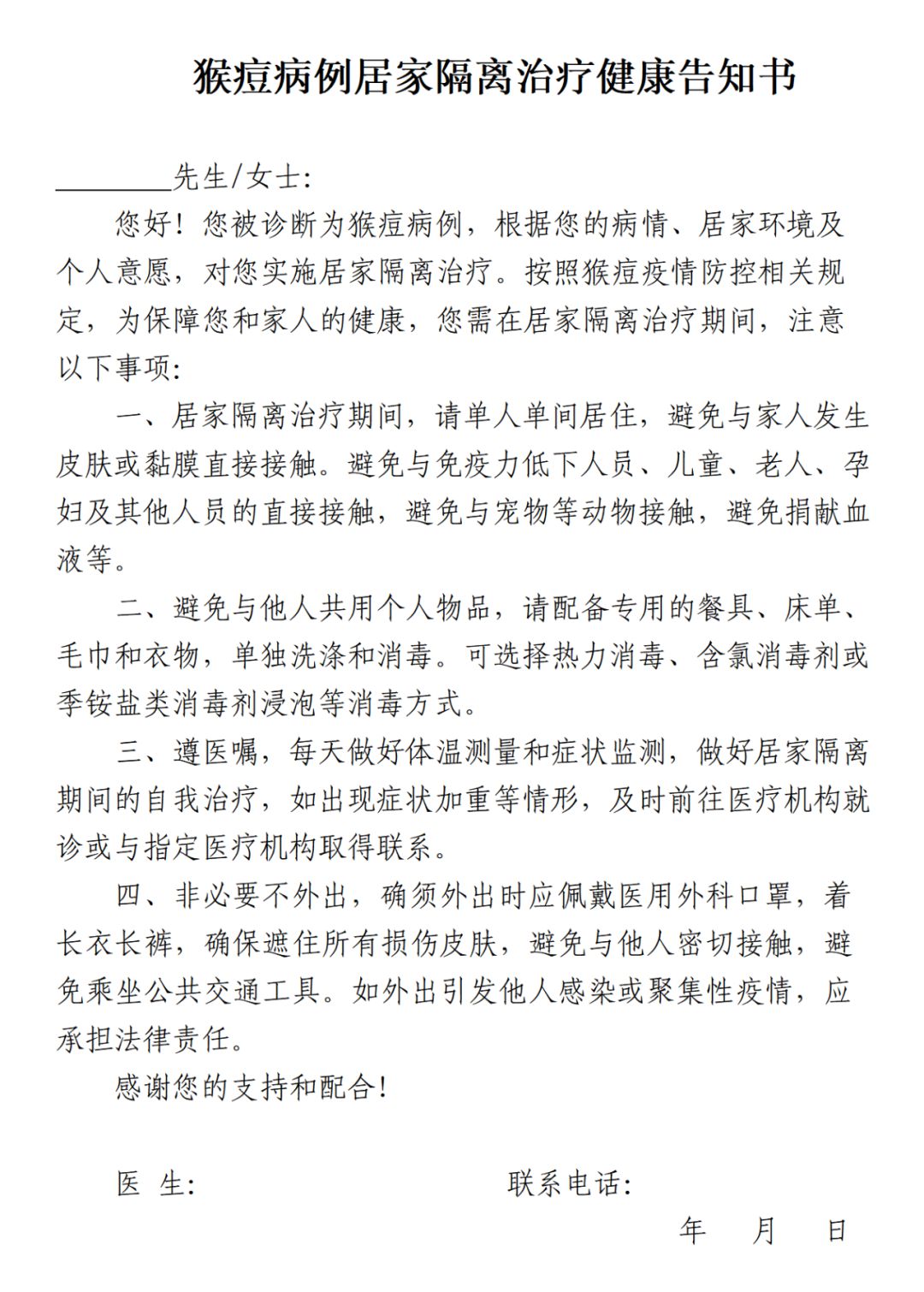 2.猴痘病例居家隔離治療健康告知書