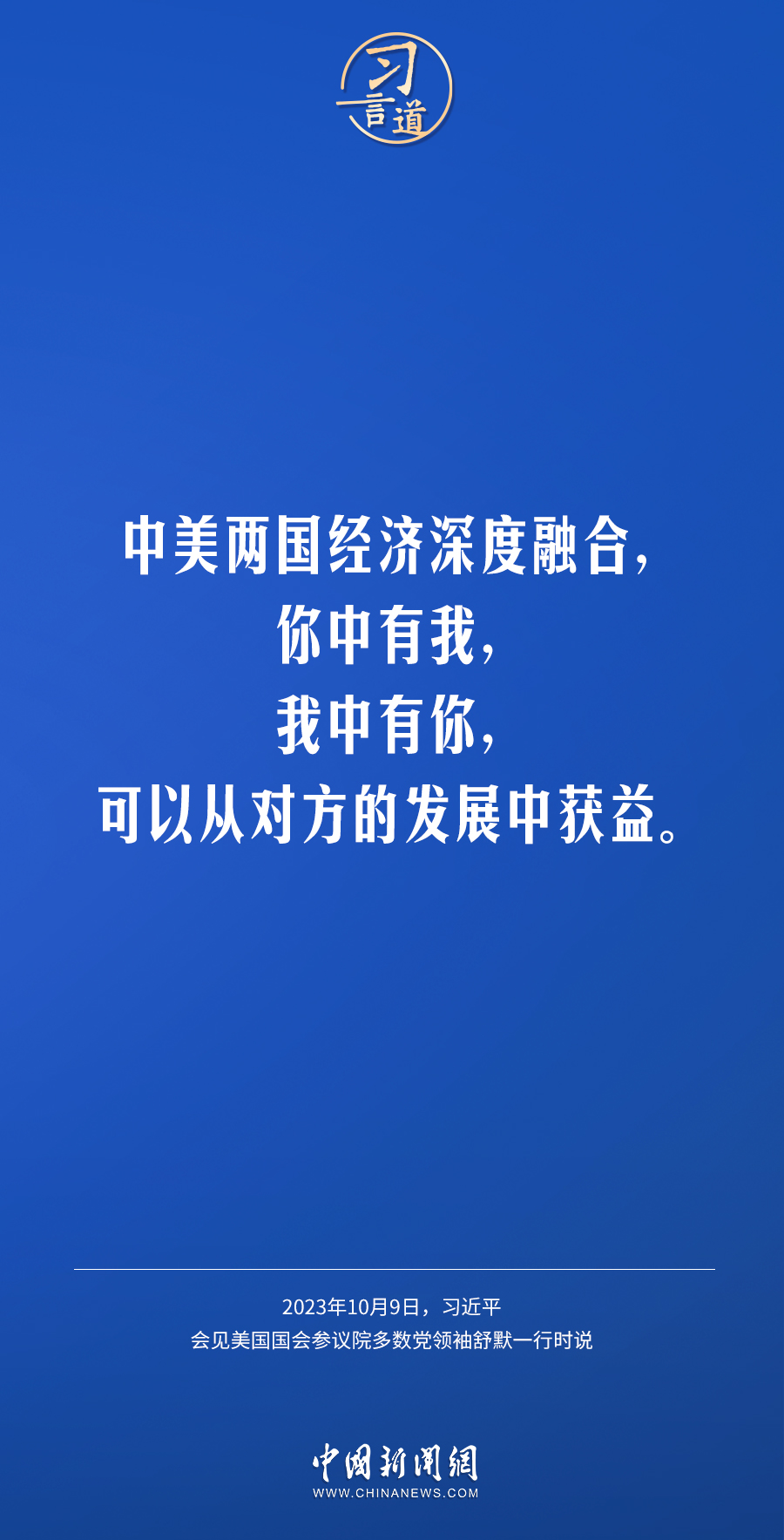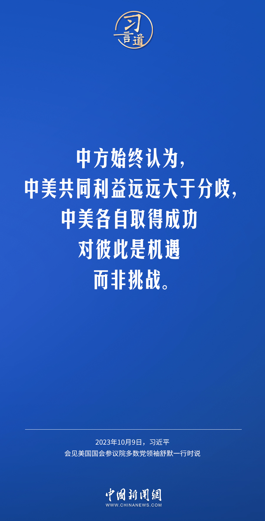 10月9日下午,國家主席習(xí)近平在人民大會堂會見美國國會參議院多數(shù)黨領(lǐng)袖舒默率領(lǐng)的美國國會參議院兩黨代表團。習(xí)近平指出——