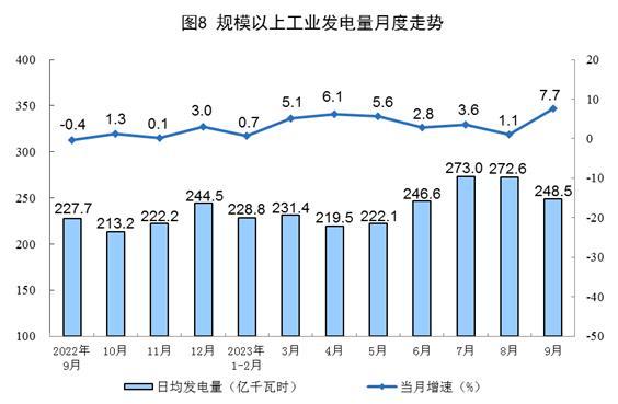 國(guó)家統(tǒng)計(jì)局:9月份發(fā)電量7456億千瓦時(shí) 同比增長(zhǎng)7.7%