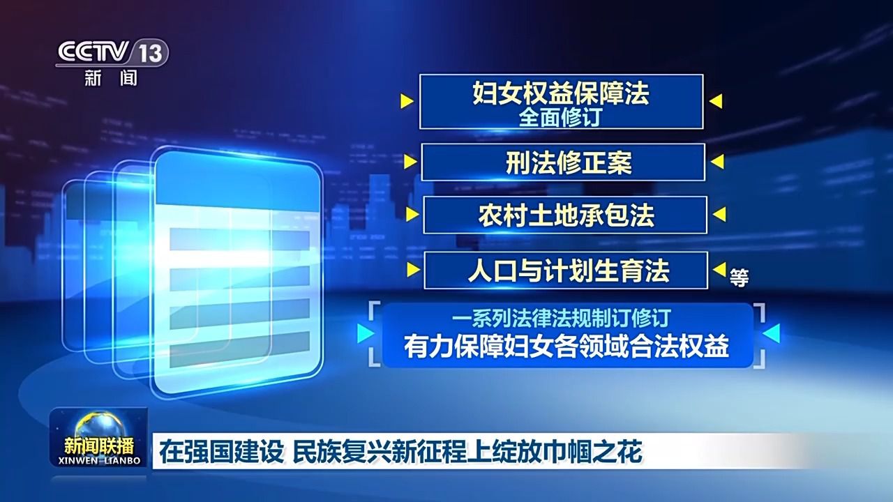 新時代,維護婦女權(quán)益,法治保障堅實有力。首部民法典頒行,首部家庭教育促進法實施,婦女權(quán)益保障法全面修訂,刑法修正案、農(nóng)村土地承包法、人口與計劃生育法等一系列法律法規(guī)制訂修訂,有力保障婦女各領(lǐng)域合法權(quán)益。