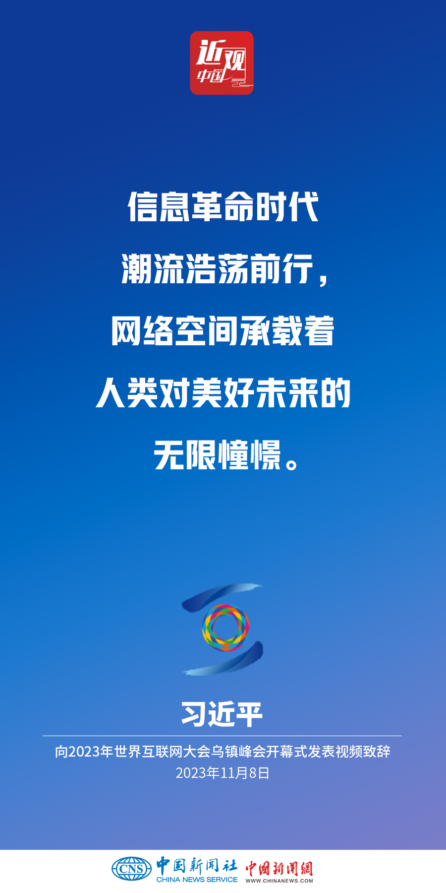 11月8日上午,國(guó)家主席習(xí)近平向2023年世界互聯(lián)網(wǎng)大會(huì)烏鎮(zhèn)峰會(huì)開幕式發(fā)表視頻致辭。他指出——