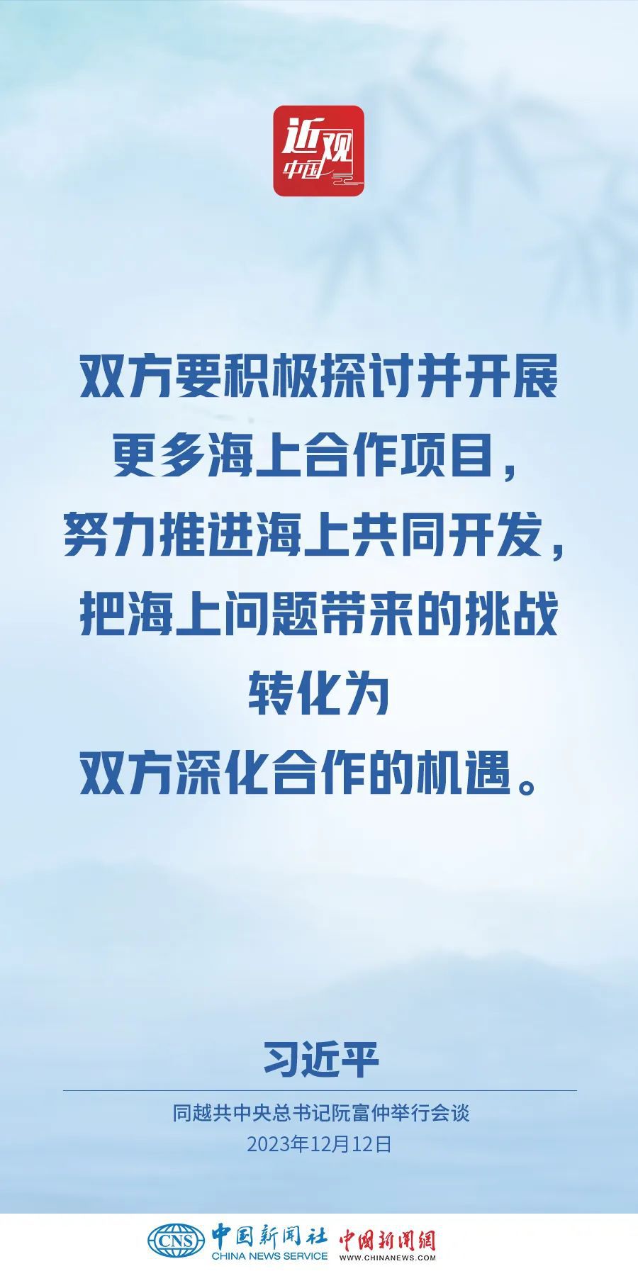 當(dāng)?shù)貢r間12月12日下午,剛剛抵達(dá)河內(nèi)的中共中央總書記、國家主席習(xí)近平在越共中央駐地同越共中央總書記阮富仲舉行會談。雙方宣布中越兩黨兩國關(guān)系新定位,在深化中越全面戰(zhàn)略合作伙伴關(guān)系基礎(chǔ)上,攜手構(gòu)建具有戰(zhàn)略意義的中越命運共同體。習(xí)近平指出——