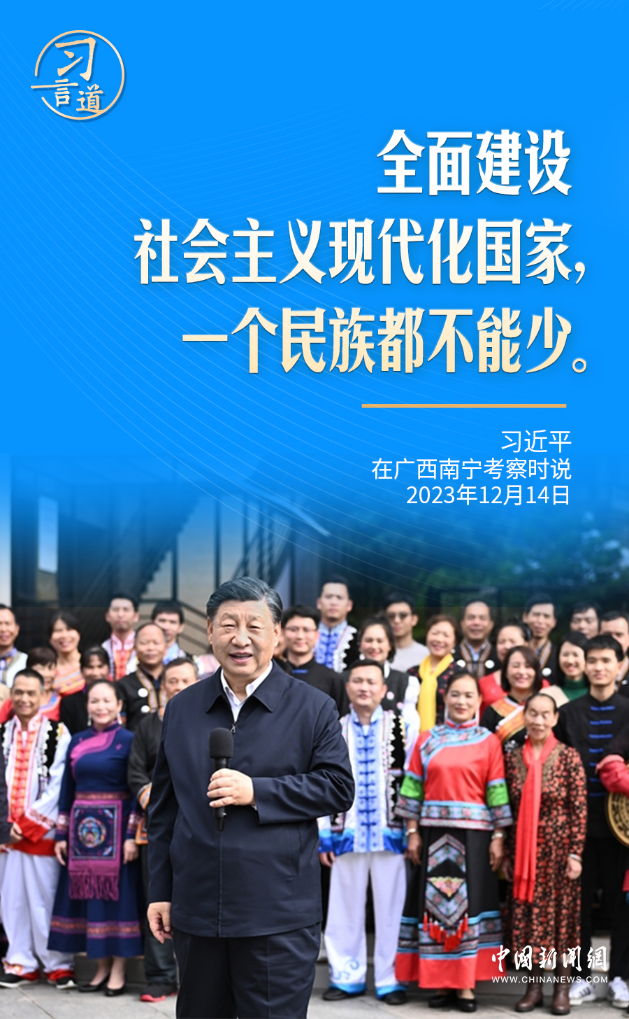 12月14日,在廣西南寧名為蟠龍社區(qū)的多民族聚居社區(qū)里,習(xí)近平再次強調(diào)了“一個民族都不能少”。