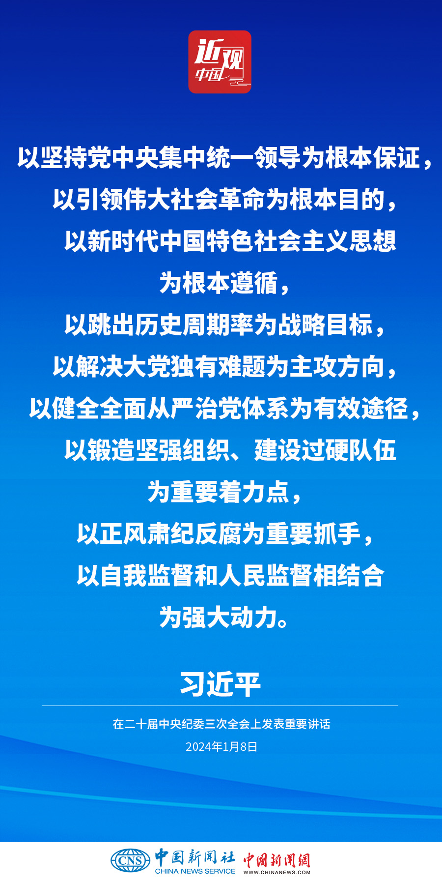 中共中央總書記、國家主席、中央軍委主席習(xí)近平8日上午在中國共產(chǎn)黨第二十屆中央紀(jì)律檢查委員會(huì)第三次全體會(huì)議上發(fā)表重要講話。他強(qiáng)調(diào)——