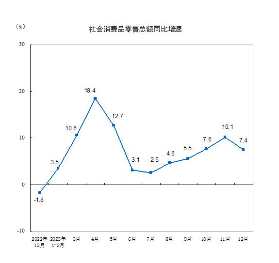 國(guó)家統(tǒng)計(jì)局:2023年12月份社會(huì)消費(fèi)品零售總額增長(zhǎng)7.4%