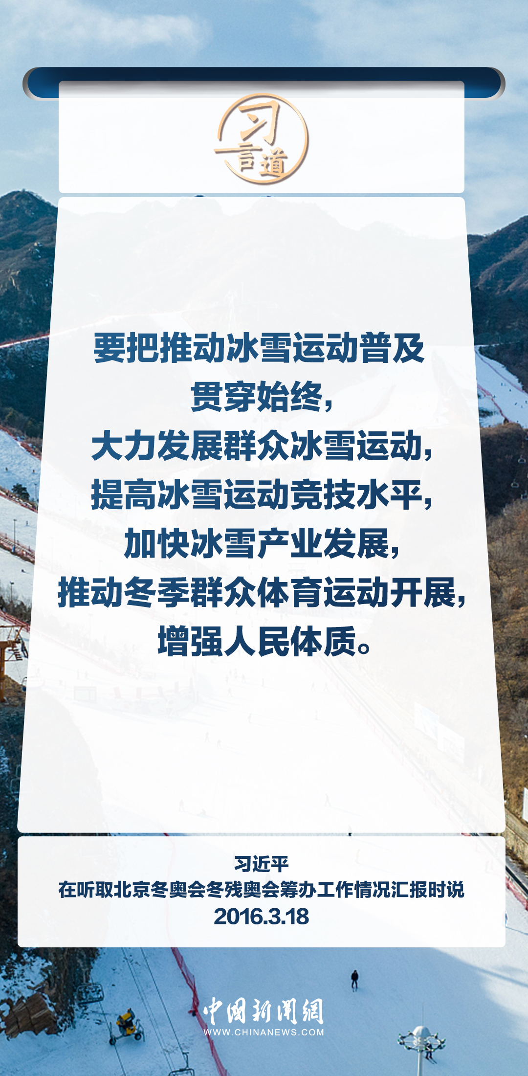 【冰雪春天】習(xí)言道|要把推動冰雪運動普及貫穿始終