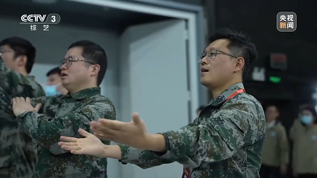 南京理工大學機械工程學院火箭導彈發(fā)射工程系主任 任杰:你看我們穿的這個服裝跟國防是相關的,而且又是演的貝塔這個角色,都應該為它去增添光彩。我們在走廊里面不在乎大家的目光,雖然文藝表演不是我們的專長,但是我們拿出真誠的態(tài)度,因為回想小時候看動畫片多幸福,小時候蹦蹦跳跳唱的時候,要把情緒傳染給大家。
