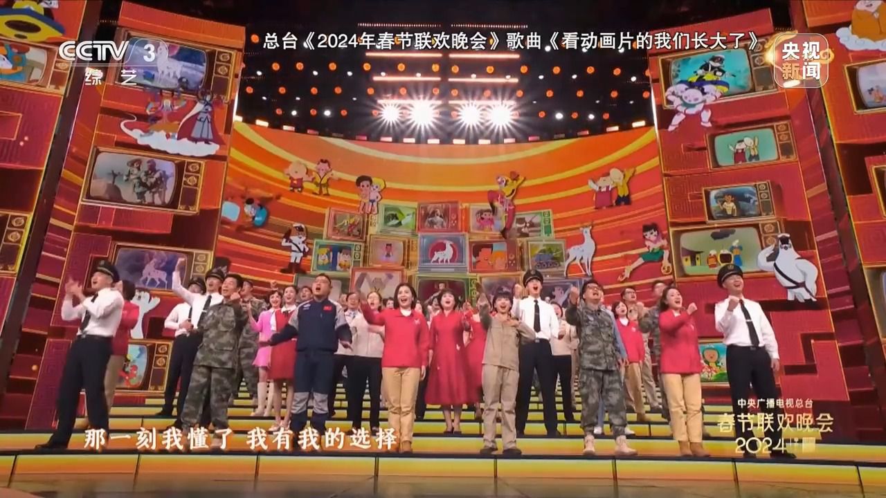 今年的總臺春晚有一首與動畫片有關的歌曲節(jié)目,從開飛機坦克的舒克貝塔到探索自然之謎的海爾兄弟,這些經(jīng)典國產(chǎn)動畫片中的主角伴隨著幾代人度過了美好的童年,也為許多孩子埋下了職業(yè)夢想的種子。春晚舞臺上來自各行各業(yè)的勞動者,用演唱經(jīng)典動畫片主題曲的方式訴說著自己成長故事。