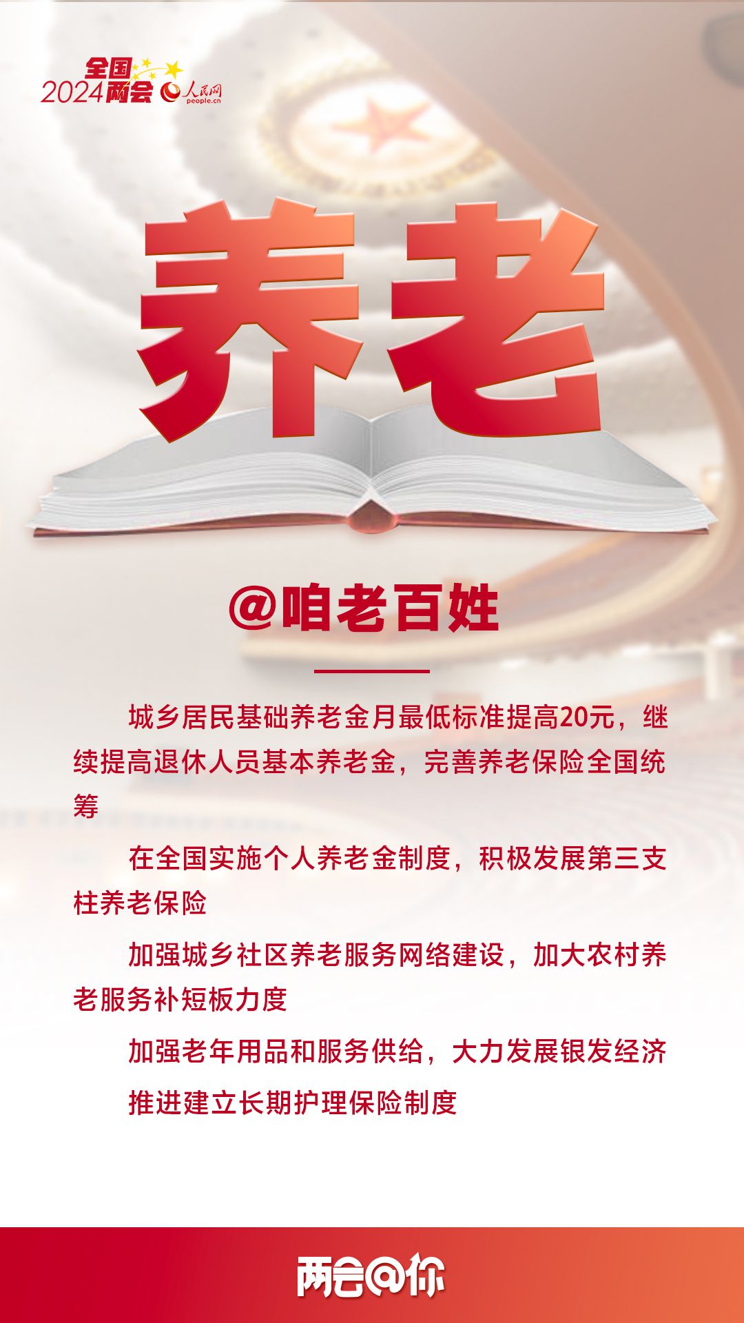 編者按:3月5日,十四屆全國人大二次會(huì)議開幕,國務(wù)院總理李強(qiáng)代表國務(wù)院向大會(huì)作政府工作報(bào)告,提出2024年經(jīng)濟(jì)社會(huì)發(fā)展總體要求和政策取向。即日起,人民網(wǎng)推出“兩會(huì)@你”系列報(bào)道,聚焦與百姓生活息息相關(guān)的熱點(diǎn)議題,梳理解讀全國兩會(huì)上的重要民生看點(diǎn),以饗讀者。