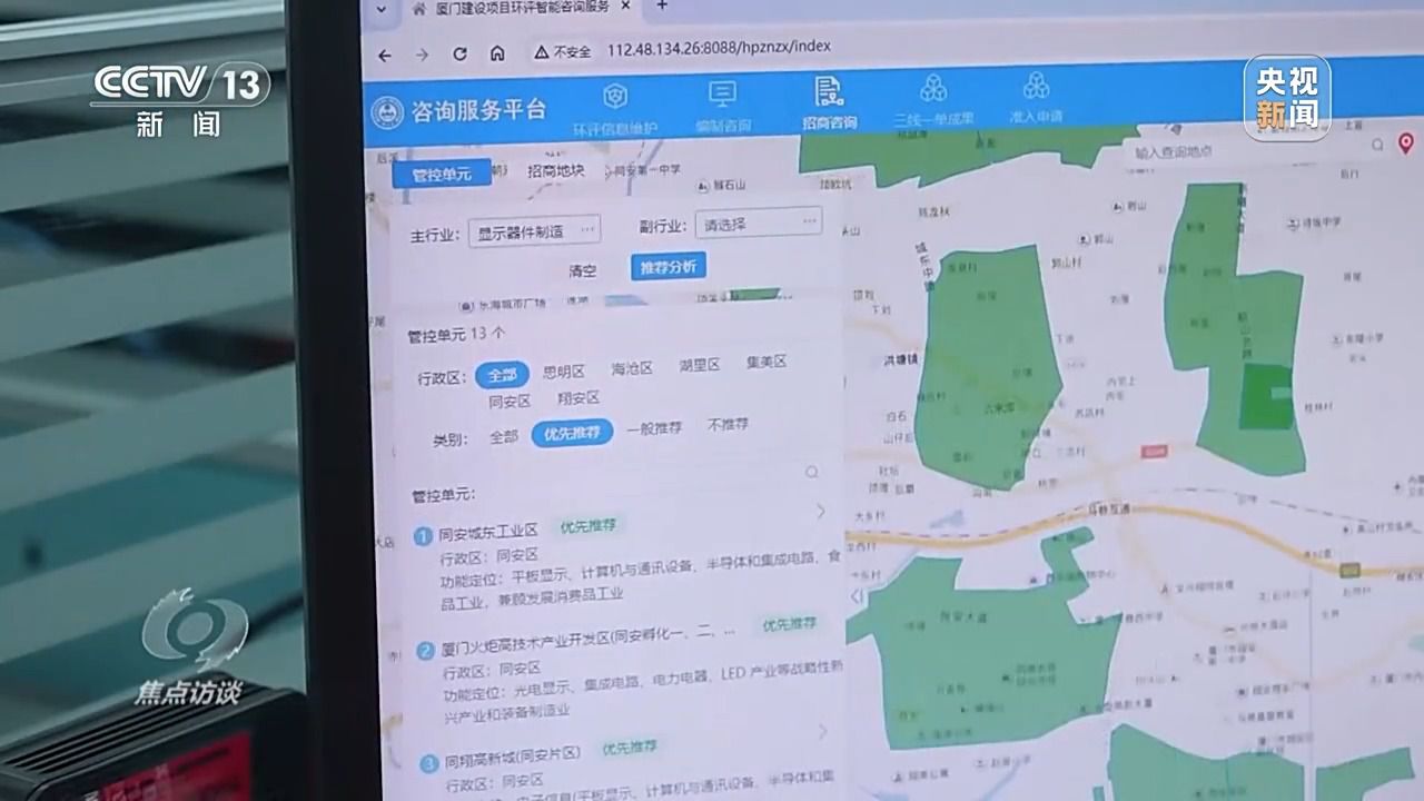 福建廈門市生態(tài)環(huán)境局環(huán)評處處長 詹源:我們在系統(tǒng)里面融入了國土空間、市政設(shè)施、產(chǎn)業(yè)布局以及生態(tài)環(huán)境,一共有207個(gè)矢量圖層,在這里面可以查看到空間信息、污水管網(wǎng)設(shè)置、產(chǎn)業(yè)布局規(guī)劃等信息。同時(shí),我們還梳理了10萬多條準(zhǔn)入條件,形成了分區(qū)管控的智慧內(nèi)核。