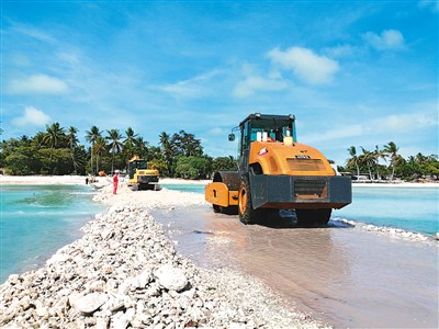 在基里巴斯首都塔拉瓦,中國企業(yè)正在為當(dāng)?shù)孛癖娦拗蛔銟颉?/p>