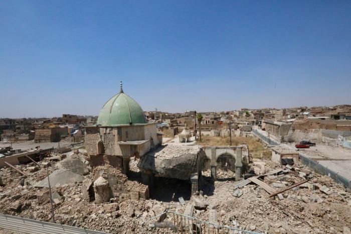 2019年7月4日,在伊拉克摩蘇爾老城拍攝的努爾清真寺。新華社發(fā)(哈利勒·達伍德攝)