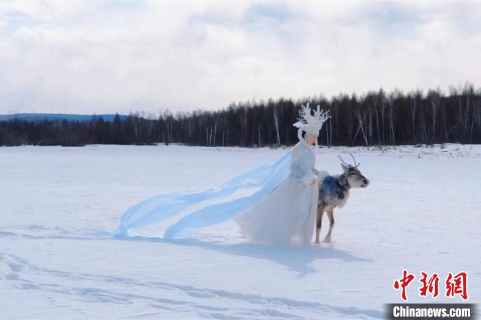 黑龍江省塔河縣文旅局局長(zhǎng)都波演繹“白鹿仙子” 黑龍江省塔河縣文旅局供圖