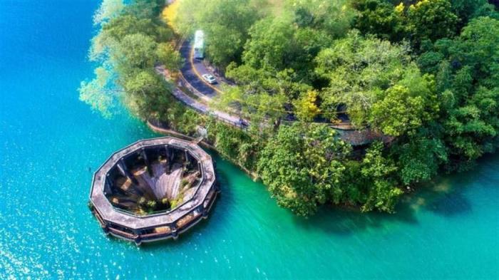 日月潭水位若高于748.5米,過多的水會從溢流井排到下游溪流;因此溢流井有“日月潭神秘黑洞”之稱。圖片來源:日月潭風(fēng)管處