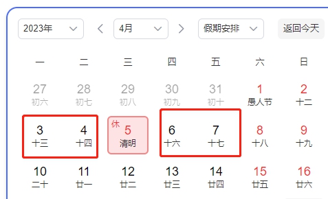 與往年不同,2023年清明節(jié)放假1天不調(diào)休。如果計(jì)劃長(zhǎng)途旅游,則需要適當(dāng)請(qǐng)假。