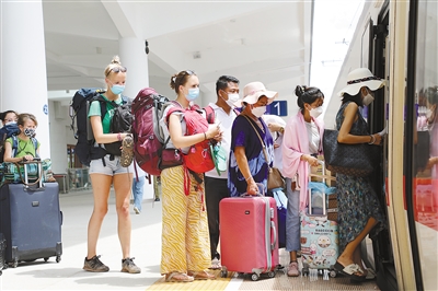 中老鐵路通車為老撾旅游業(yè)發(fā)展帶來新機(jī)遇。中老鐵路是老撾第一條現(xiàn)代化鐵路,快捷便利的“瀾滄號”動車成為很多老撾民眾和國際游客出行的首選交通工具。老撾新聞文化旅游部數(shù)據(jù)顯示,從萬象前往旅游城市瑯勃拉邦的游客更喜歡乘坐“瀾滄號”出行,2022年前10個月,33.6萬名游客中85.27%選擇乘坐火車。