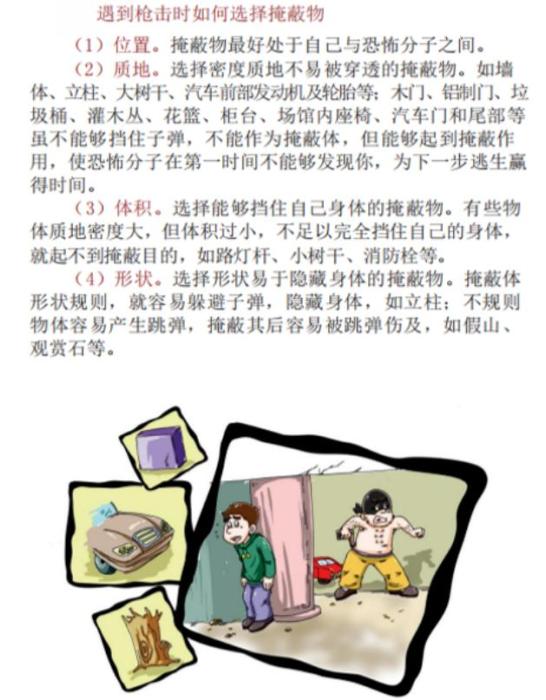 遇到槍擊時如何選擇掩蔽物 圖片來源:中國駐美國大使館微信公眾號