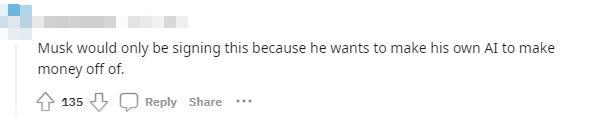 但也有人懷疑馬斯克的動(dòng)機(jī),“馬斯克之所以會(huì)簽署它,因是為他想用自己的人工智能來(lái)賺錢。”