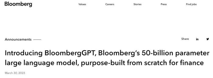 中新網3月31日電 3月30日,彭博發(fā)布公告稱,推出為金融界打造的大型語言模型(LLM)——BloombergGPT。