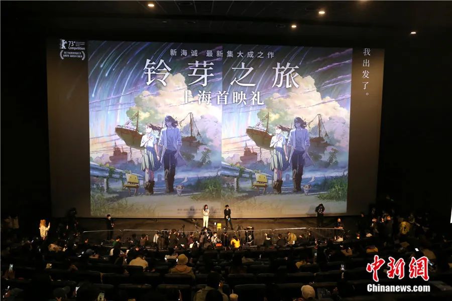 導(dǎo)演新海誠(chéng)攜最新電影《鈴芽之旅》在上海萬(wàn)達(dá)影城舉行首映式。陳玉宇 攝