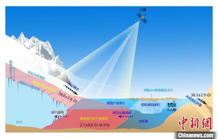在全球變暖背景下,冰川正在加速消融與退縮。喜馬拉雅地區(qū)分布著數(shù)以萬計(jì)冰湖,與冰川相連的冰前湖迅速擴(kuò)張,約占該區(qū)域冰湖總數(shù)量的12%。此前研究更多聚焦于冰湖面積和水量變化,以及由此引發(fā)的冰湖潰決洪水災(zāi)害風(fēng)險(xiǎn)。然而,在估算冰川的冰量變化時(shí),傳統(tǒng)的大地測(cè)量法未考慮冰湖擴(kuò)張引起的水下冰質(zhì)量損失,導(dǎo)致喜馬拉雅地區(qū)甚至全球尺度冰川質(zhì)量損失被低估。