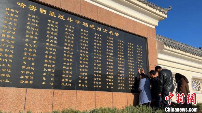 清明節(jié)前夕,在新疆哈密烈士陵園哈密剿匪戰(zhàn)斗中犧牲烈士名錄墻前(以下簡(jiǎn)稱(chēng)“英名墻”),竇來(lái)強(qiáng)、竇剛強(qiáng)、竇瑞琴、竇調(diào)蕊、焦霞霞五位從甘肅天水趕來(lái)的年輕人,撫摸著“英名墻”上其中一個(gè)名字,放聲痛哭。