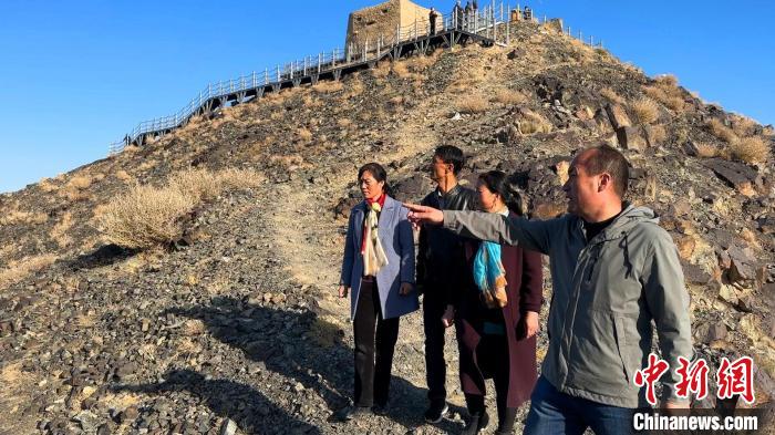 李世宗烈士孫子孫女一行在當(dāng)年伊吾四十天保衛(wèi)戰(zhàn)戰(zhàn)斗發(fā)生地勝利峰。 王侯 攝