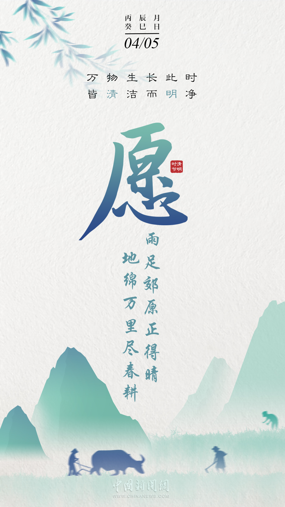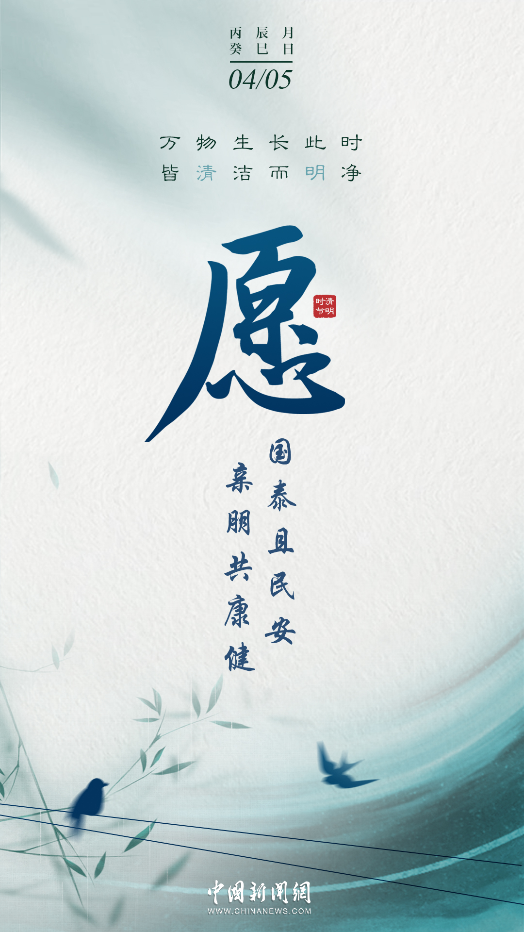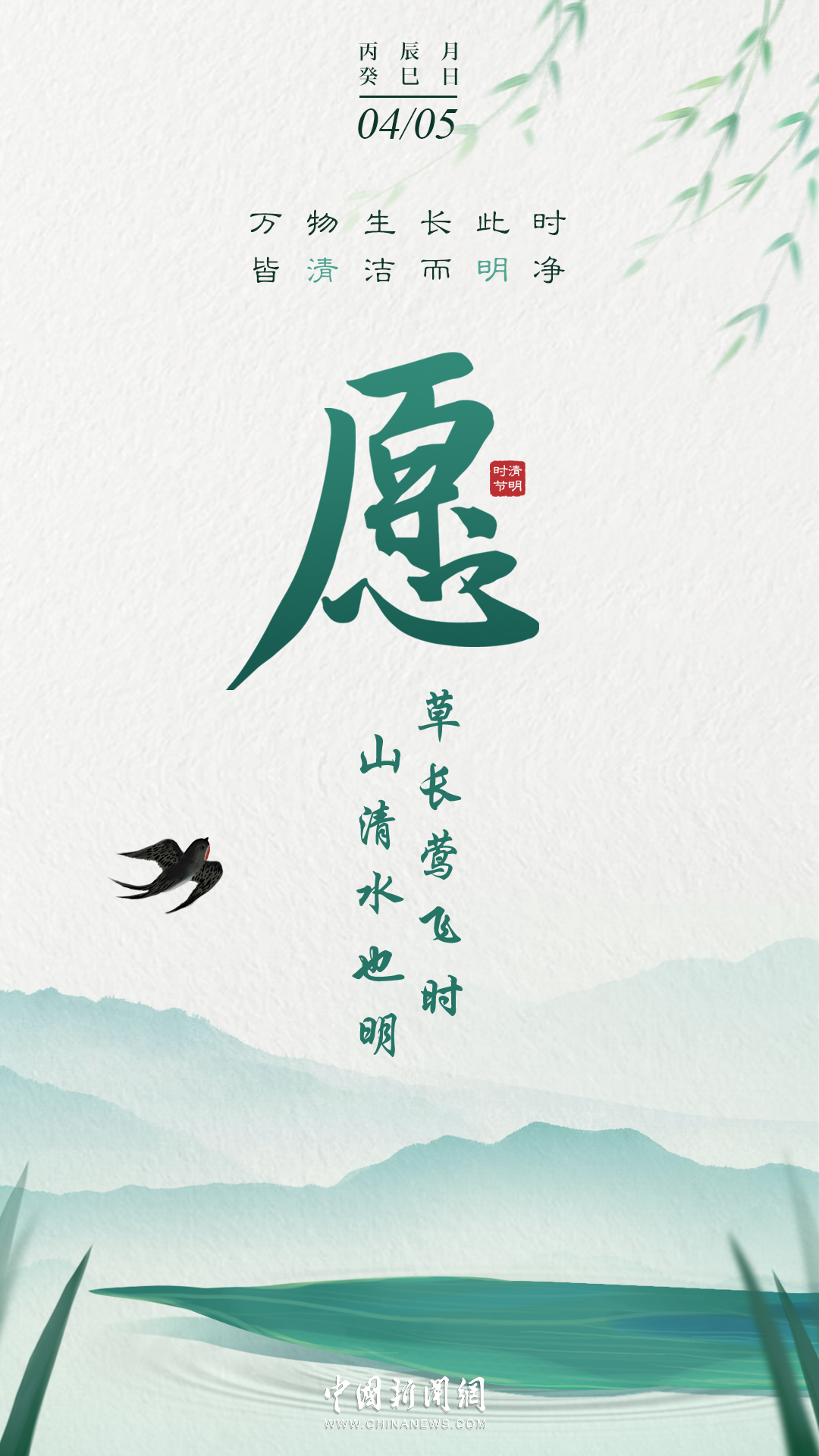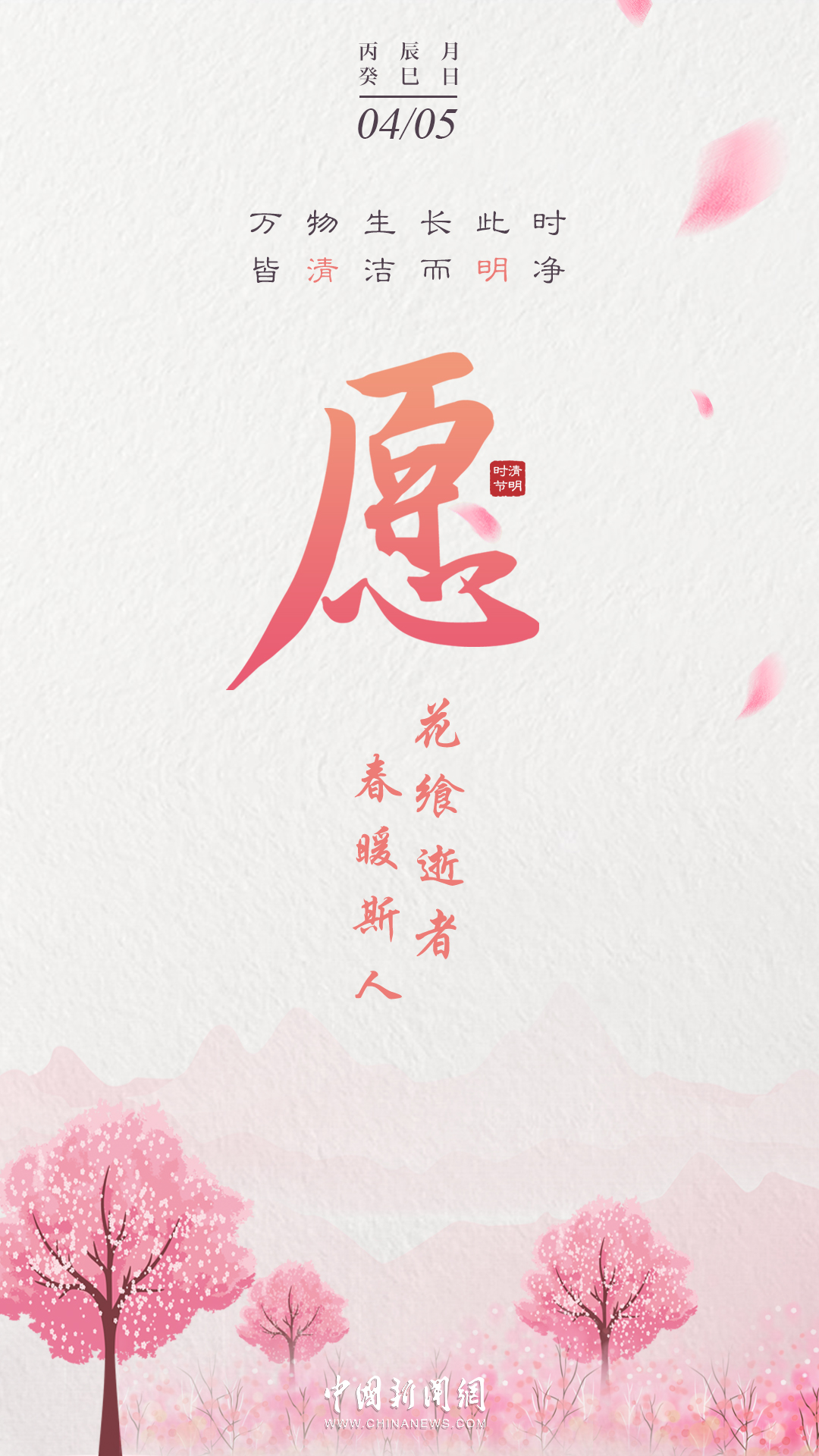 萬物生長此時,皆清潔而明凈,故謂之清明。桐花開,虹始見,草長鶯飛時,攜好友二三逐紅花,穿垂柳,紛紛春雨和縷縷清風(fēng)化盡了路上行人的哀愁事。今日清明,愿萬里氣清景明,你我心清目明。