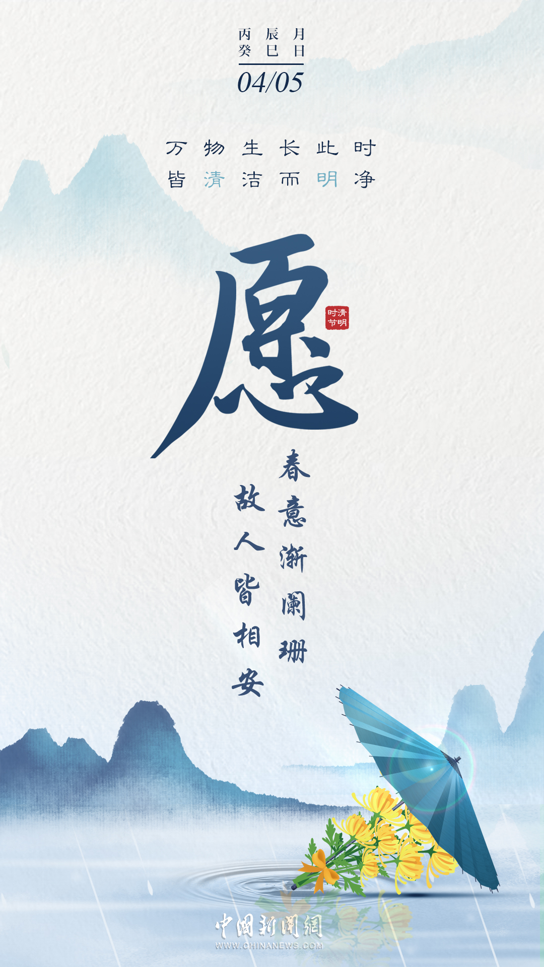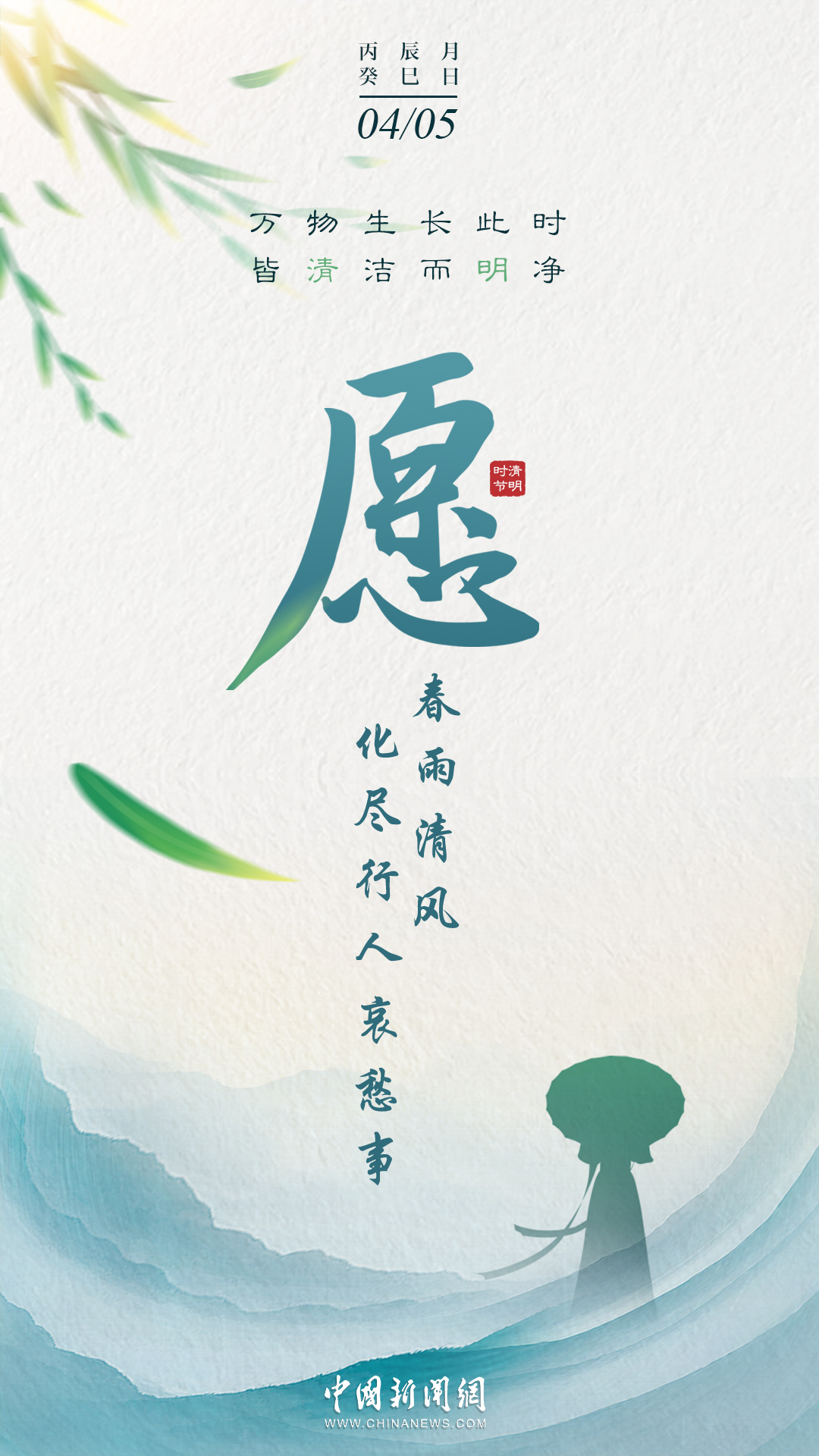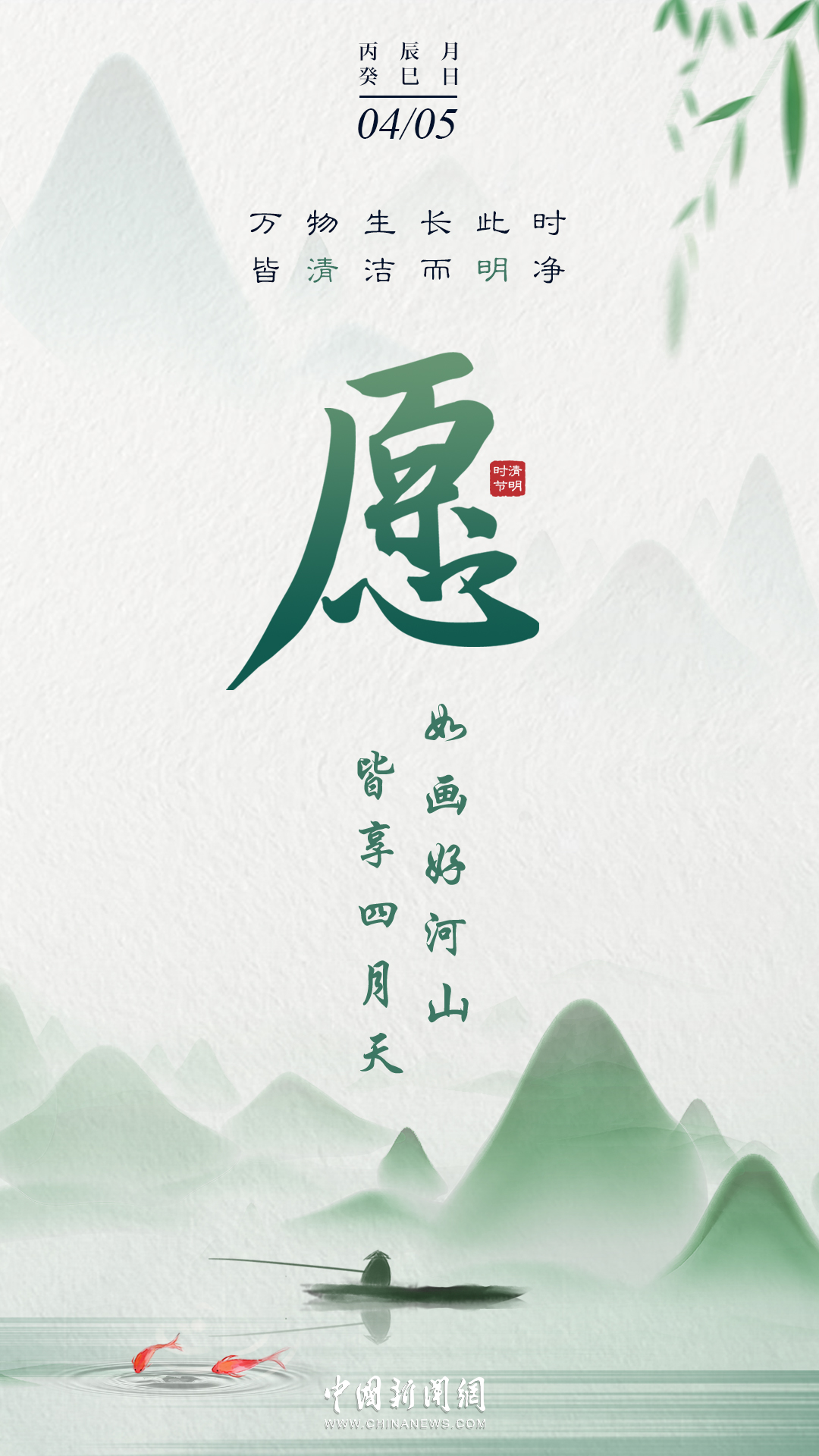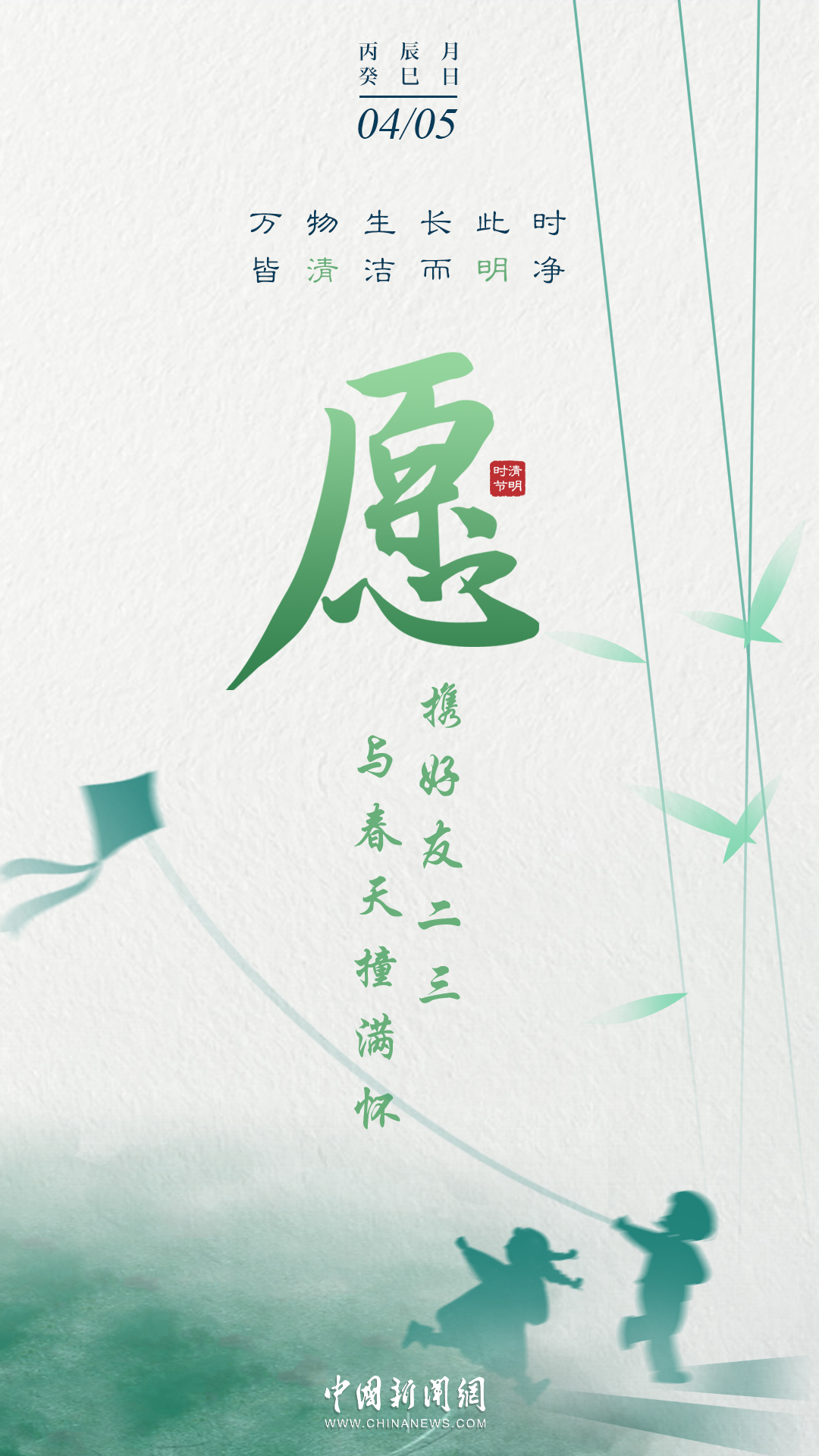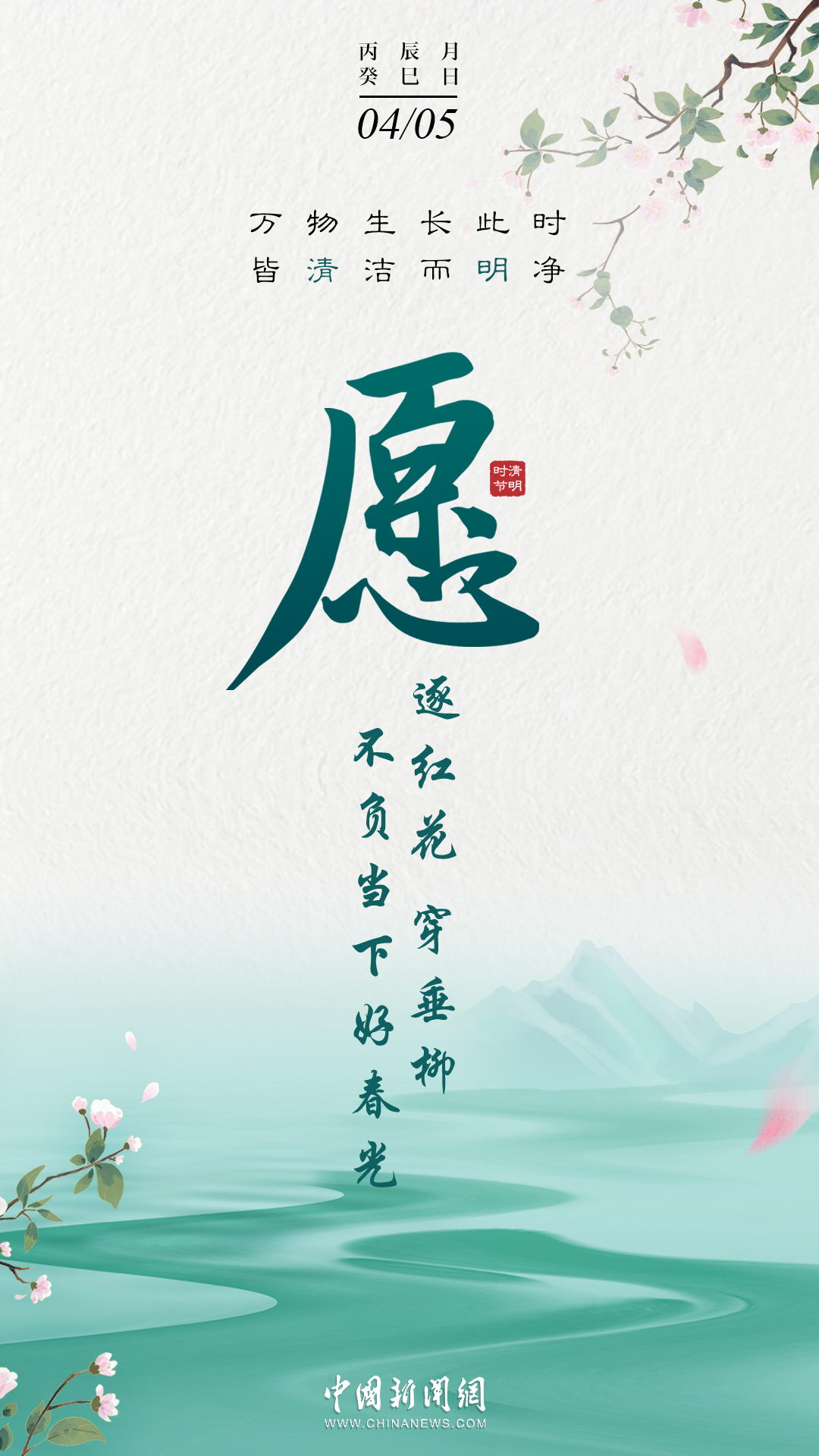 萬物生長此時,皆清潔而明凈,故謂之清明。桐花開,虹始見,草長鶯飛時,攜好友二三逐紅花,穿垂柳,紛紛春雨和縷縷清風(fēng)化盡了路上行人的哀愁事。今日清明,愿萬里氣清景明,你我心清目明。