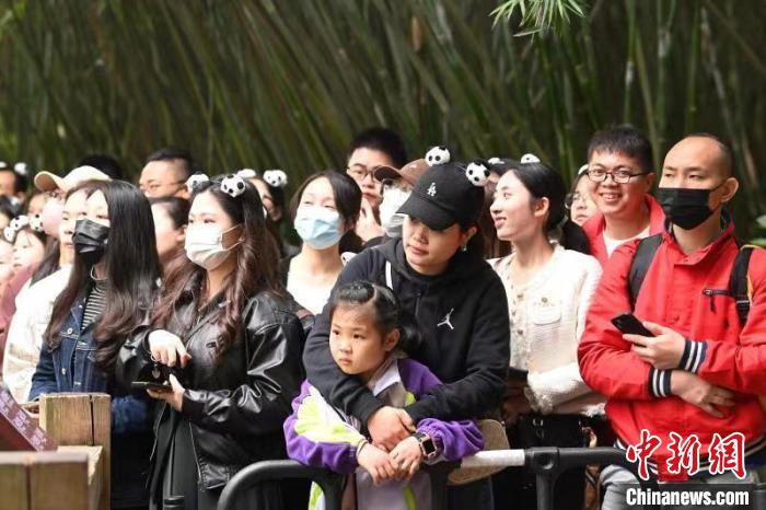 中新網(wǎng)成都4月9日電 (賀劭清 安源 祝歡)4月上旬,成都大熊貓繁育研究基地幼年大熊貓別墅外,抱著竹筍沉浸式“吃播”的大熊貓“和花”吸引了全場(chǎng)游客的目光。人們歡喜地向這位“新晉頂流”揮手問(wèn)好、拍照留念,似乎全然忘記,為了這三分鐘的見(jiàn)面,剛在料峭春寒中排隊(duì)超過(guò)一個(gè)小時(shí)。