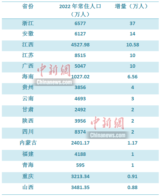 中新網(wǎng)北京4月14日電(記者 李金磊)各省份2022年人口數(shù)據(jù)陸續(xù)披露。