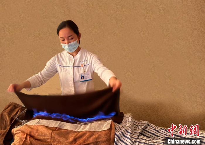 醫(yī)護(hù)人員對患者進(jìn)行火龍灸。 杭州市中醫(yī)院供圖