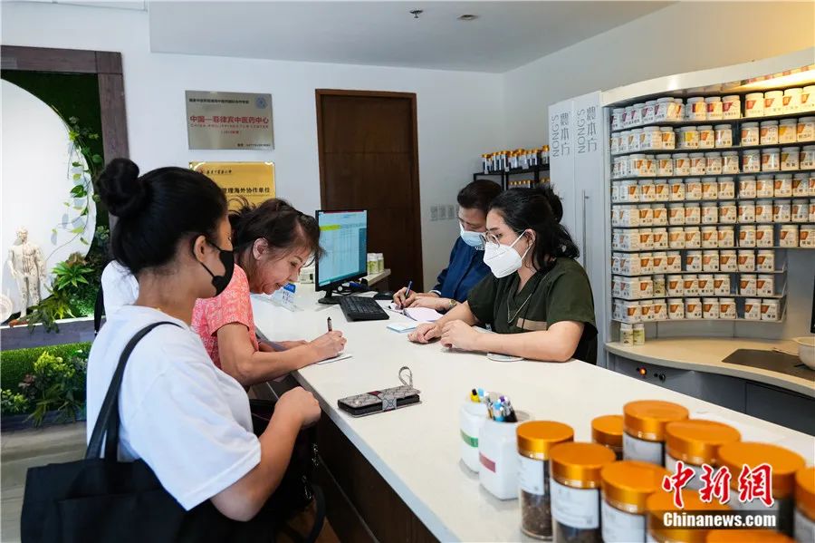 來自比利時、白俄羅斯和加納的外國友人在山東東營一家中醫(yī)醫(yī)院的中藥房識別、稱量中藥材。周廣學(xué) 攝