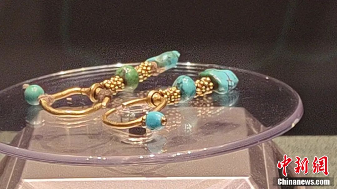 墓中出土的人首魚(yú)尾紋金飾片,人物脖頸飾后方飄浮的綬帶,都是典型的波斯薩珊王朝裝飾紋樣。