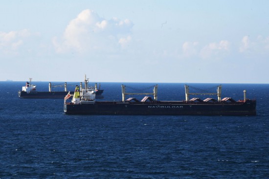 2022年8月6日,從烏克蘭出發(fā)的第二批運(yùn)糧船抵達(dá)土耳其伊斯坦布爾的博斯普魯斯海峽黑海入海口附近。(新華社記者沙達(dá)提攝)