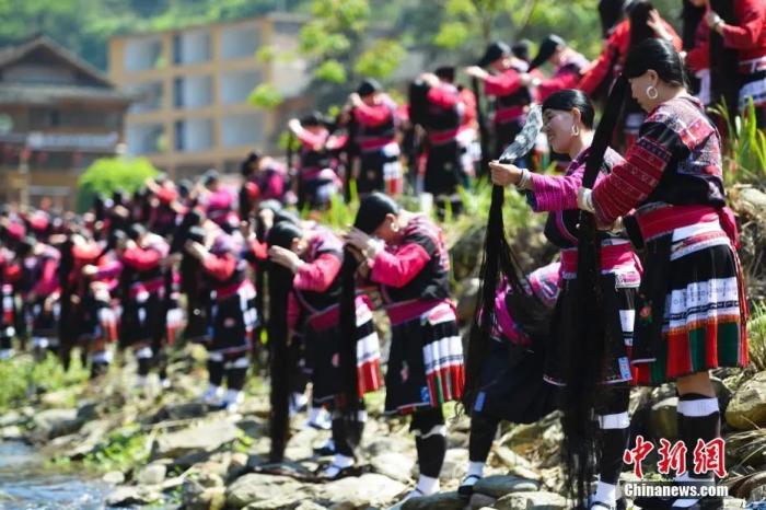 龍勝各族自治縣的民俗巡游、長發(fā)梳妝