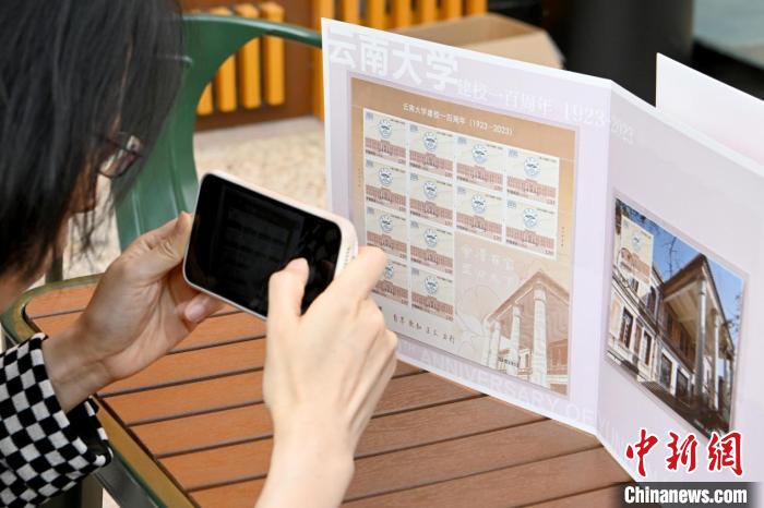 圖為當(dāng)天發(fā)行的《云南大學(xué)建校一百周年》紀(jì)念郵票 李嘉嫻 攝