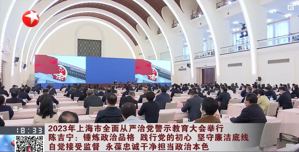 視頻截圖:2023年上海市全面從嚴(yán)治黨警示教育大會(huì)