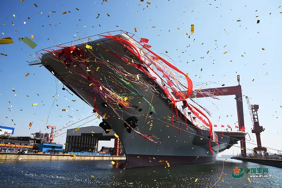 資料圖:中國(guó)第二艘航空母艦(中國(guó)首艘國(guó)產(chǎn)航母)下水儀式在中國(guó)船舶重工集團(tuán)公司大連造船廠舉行。圖片來源:中國(guó)軍網(wǎng)