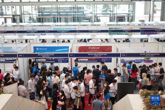 4月22日,在位于越南首都河內(nèi)的國家會議中心,留學(xué)咨詢者絡(luò)繹不絕。新華社記者 胡佳麗 攝