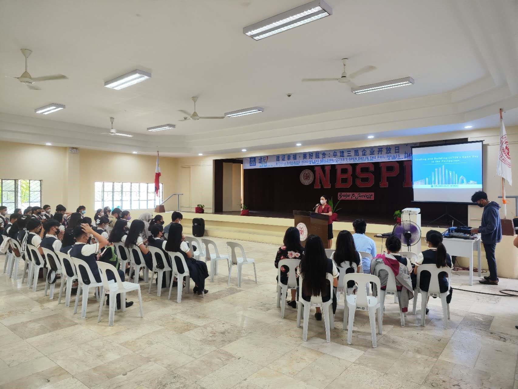 活動中,中建三局菲律賓KCC項目青年員工劉佳良介紹了中建三局海外發(fā)展情況及在當?shù)亻_展的社會責任活動,并向?qū)W生們分享中國文學名著《西游記》。學生們踴躍交流分享自己最愛的一本書,現(xiàn)場氣氛熱烈。