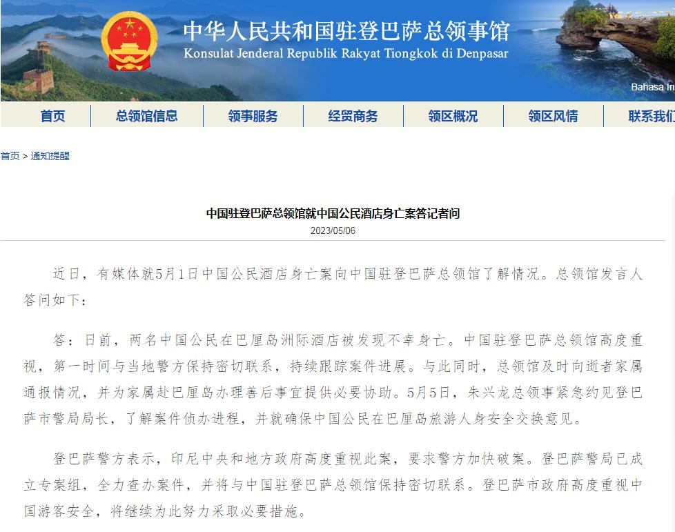 - 中國(guó)駐登巴薩總領(lǐng)館就中國(guó)公民酒店身亡案答記者問(wèn)