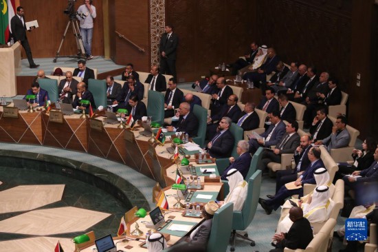 這是5月7日在埃及開羅拍攝的阿拉伯國家聯(lián)盟外長級特別會議現(xiàn)場。新華社發(fā)(艾哈邁德·戈馬 攝)
